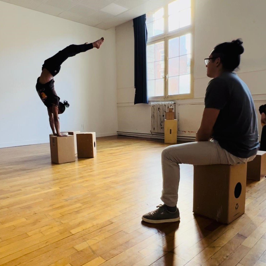 Au rythme du cirque et des percussions, nous allons voyager ensemble en Afrique, Amérique Latine, en Europe et faire du cajon un objet d’acrobatie, de manipulation, de jeu à l’unisson.