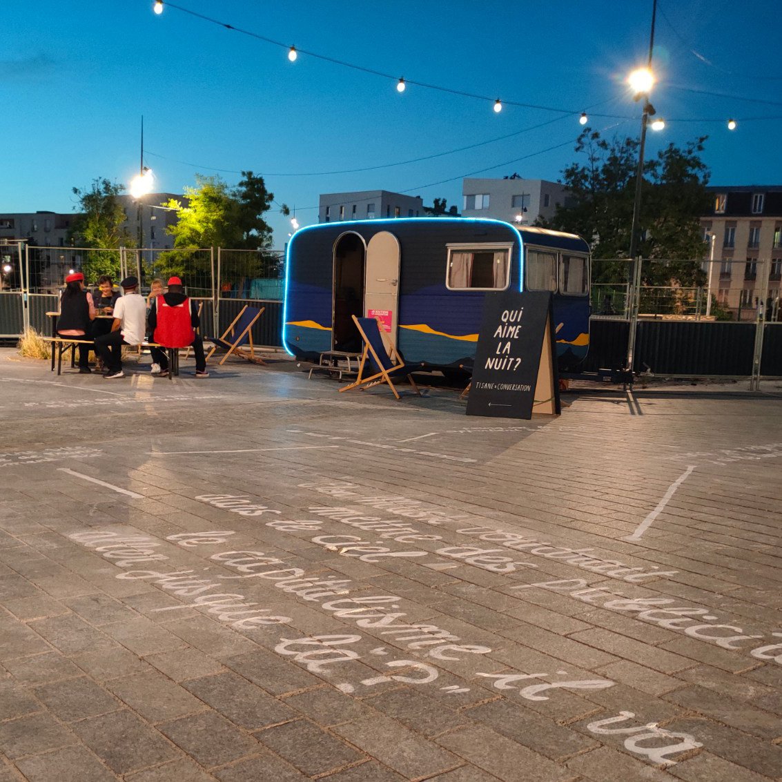 Basée à Marseille, La Folie Kilomètre est un collectif de création en espace public fondé en 2011. Elle regroupe des artistes issus du spectacle vivant, des arts plastiques et de l’aménagement du territoire.
