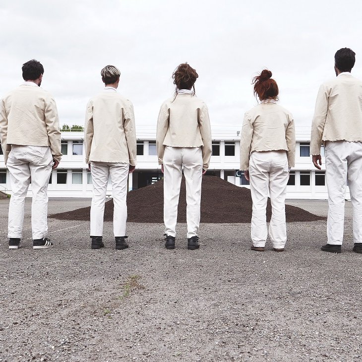 Croûtes prend la forme d’une célébration dans l’espace public, d’une fête païenne autour d’un tas de terre, d’un rituel qui réfère aussi bien au travail des taupes, des vers qu’à celui des aménageurs. À travers l’écriture d’une fresque joyeuse et sensible, les artistes mettent en scène le récit d’un sol vivant pour nous inciter à imaginer une nouvelle relation au monde et à enterrer notre obsession à maîtriser le sol.