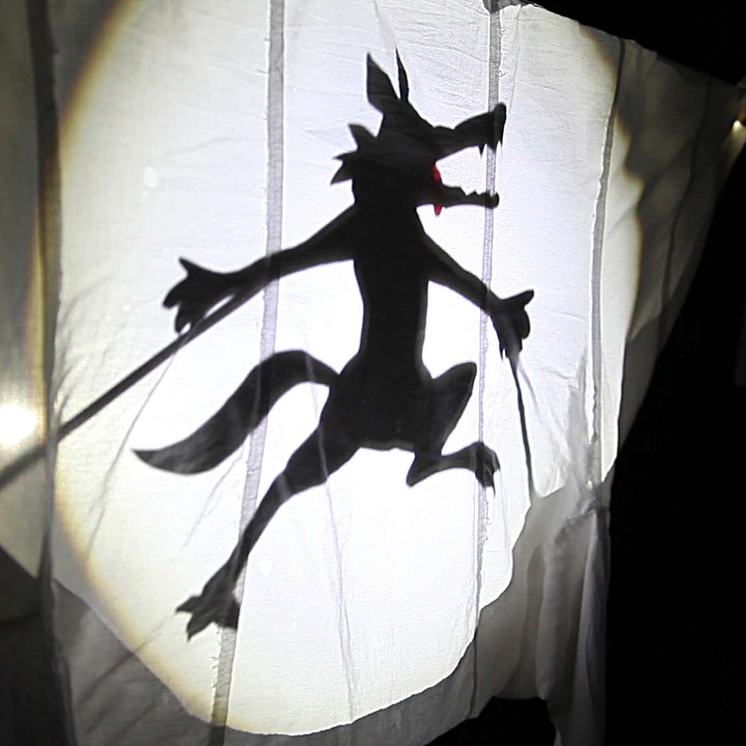 Viens, entre dans la gueule du loup, n’est pas peur, il dort, plein de nouveaux amis t’attendent à l’intérieur. Entre dans cet univers fait de magie et de lumière, un théâtre d’ombre où te sera conté l’histoire de la petite fille.