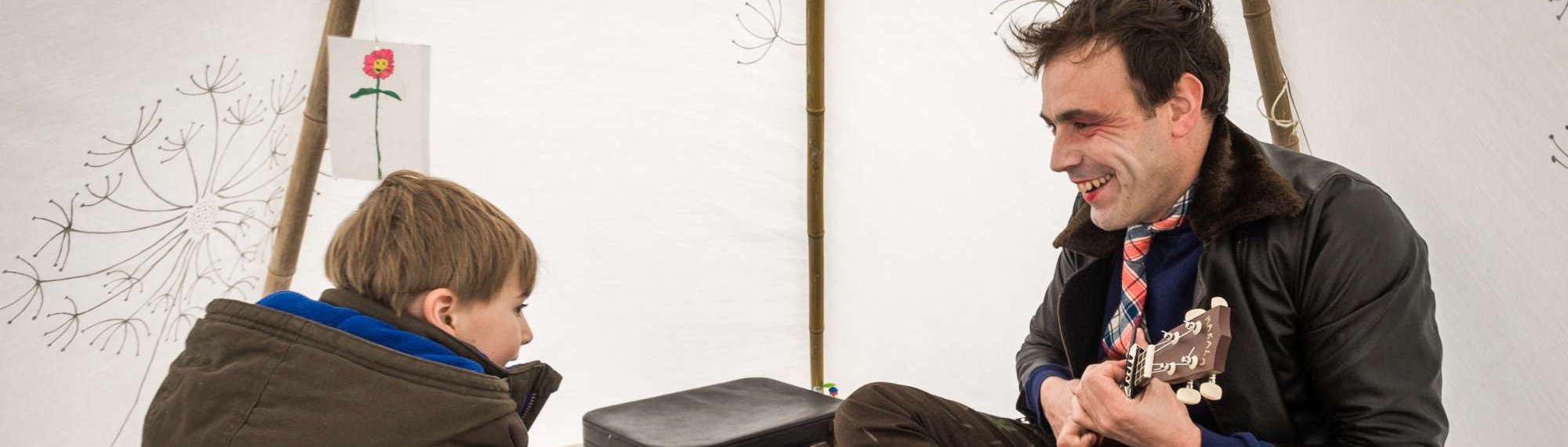 Confidences, anecdotes, poèmes de Bernard Friot (extraits de Peut-être Oui) et chanson rythment chaque tipi. Une expérience dense et originale à vivre pour l’enfant et l’adulte en devenir.